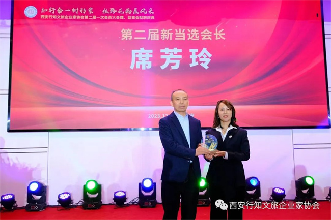 席芳玲當(dāng)選并連任第二屆西安行知文旅企業(yè)家協(xié)會會長。王小全當(dāng)選監(jiān)事長,李學(xué)斌當(dāng)選秘書長。