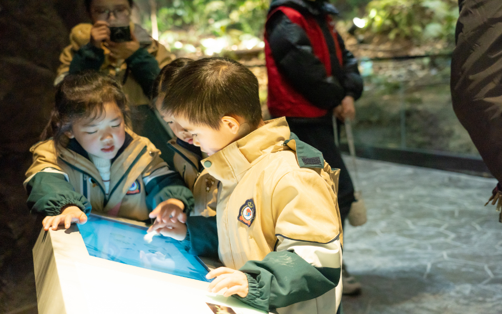 “媽媽,你看這棵樹上面也掛了牌子。”一大早,開化縣實驗幼兒園的小朋友們來到古田山探索自然的秘密。小朋友與家長沿路而上,檵木、浙江大青、赤楊葉等植物被一一記錄在研學(xué)手冊上,有的小朋友還手持放大鏡觀察植物的脈絡(luò)紋理,將自己喜歡的樹葉記錄下來,剪出形狀。“今天很開心,我看到了喜歡的楊梅樹,還撿到了鵝卵石。”一個小朋友興奮地歡呼到。結(jié)束室外活動,孩子們與家長來到了錢江源國家公園科普館,近距離觀察野生動植物標(biāo)本,學(xué)習(xí)錢江源國家公園動植物相關(guān)知識。