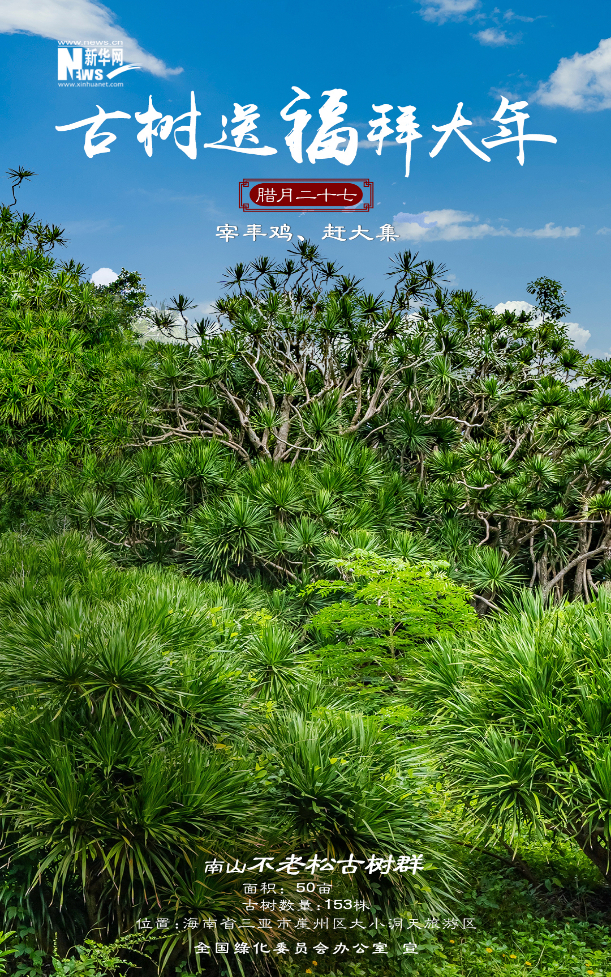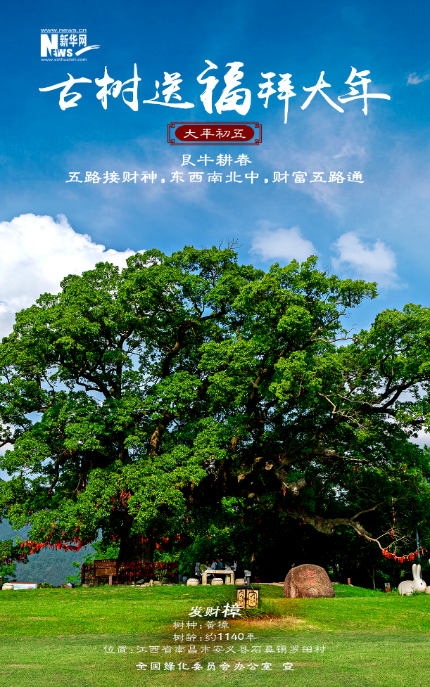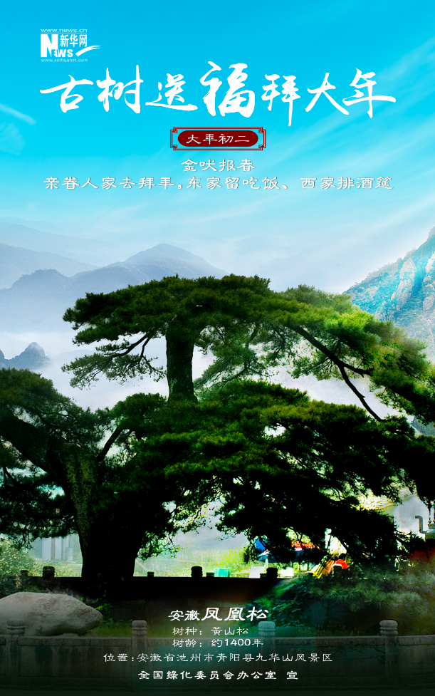 今年春節(jié),新華網(wǎng)聯(lián)合全國綠化委員會辦公室,策劃推出“古樹送福拜大年”系列海報12張,選取寓意喜樂吉祥、文化底蘊深厚、景觀自然絕美的古樹名木,結合中國春節(jié)習俗,給廣大網(wǎng)友拜年啦!